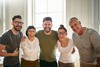 Fem voksne rundt 30 år, vennegjeng.