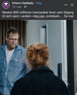 | Kirkens nødhjelp | Skuespiller | Mannen i døra. Innsamlingsaksjon bøsseb | Morgenstern AS | 2023 |